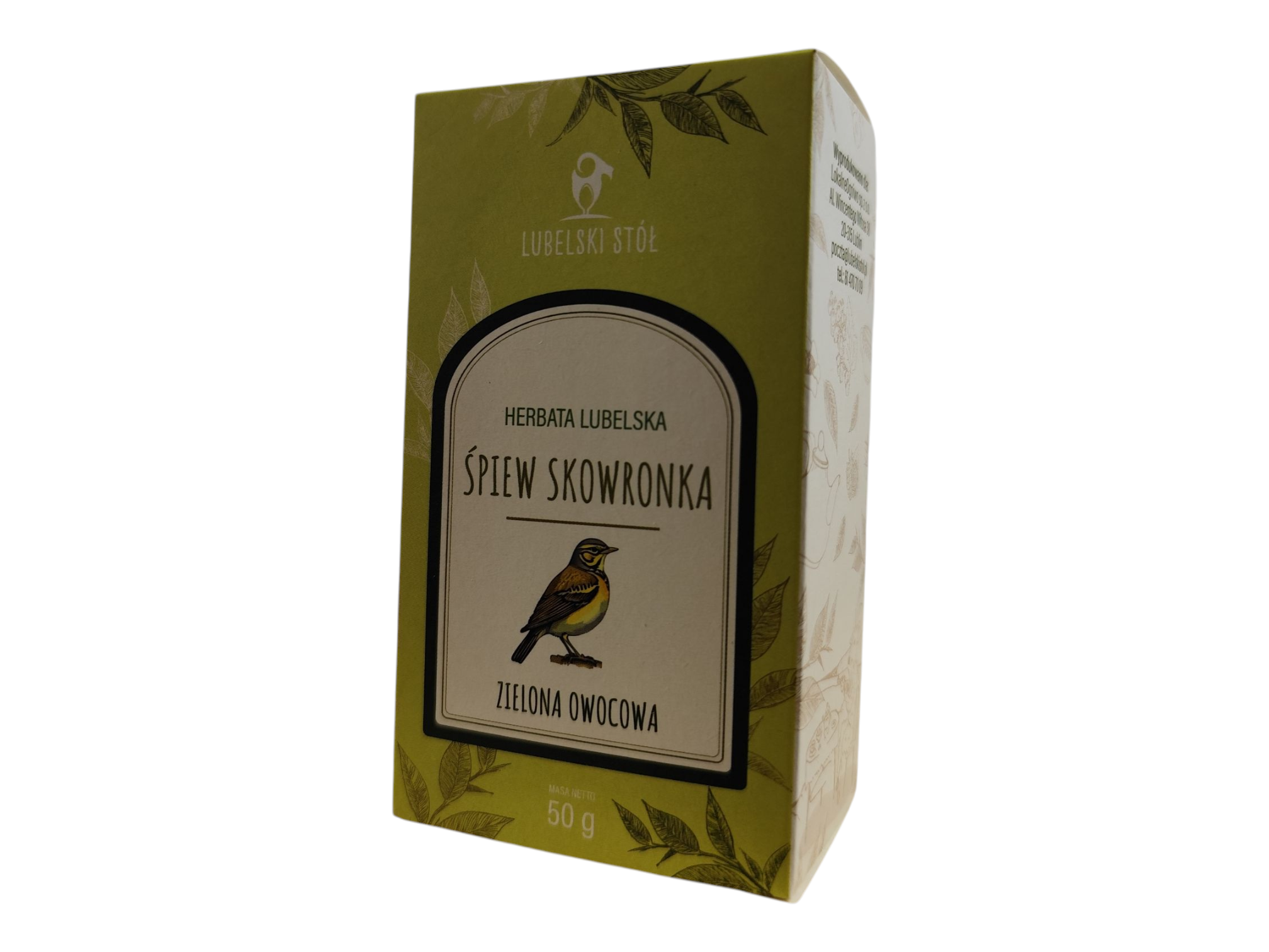 Herbata Lubelska Śpiew Skowronka, to wysokogatunkowa zielona herbata Ceylon OPA, wzbogacona o aromatyczne składniki nadające jej delikatny, wyjątkowy i świeży smak, takie jak papaja, pomarańcza, jaśmin, rabarbar, bławatek, bambus.