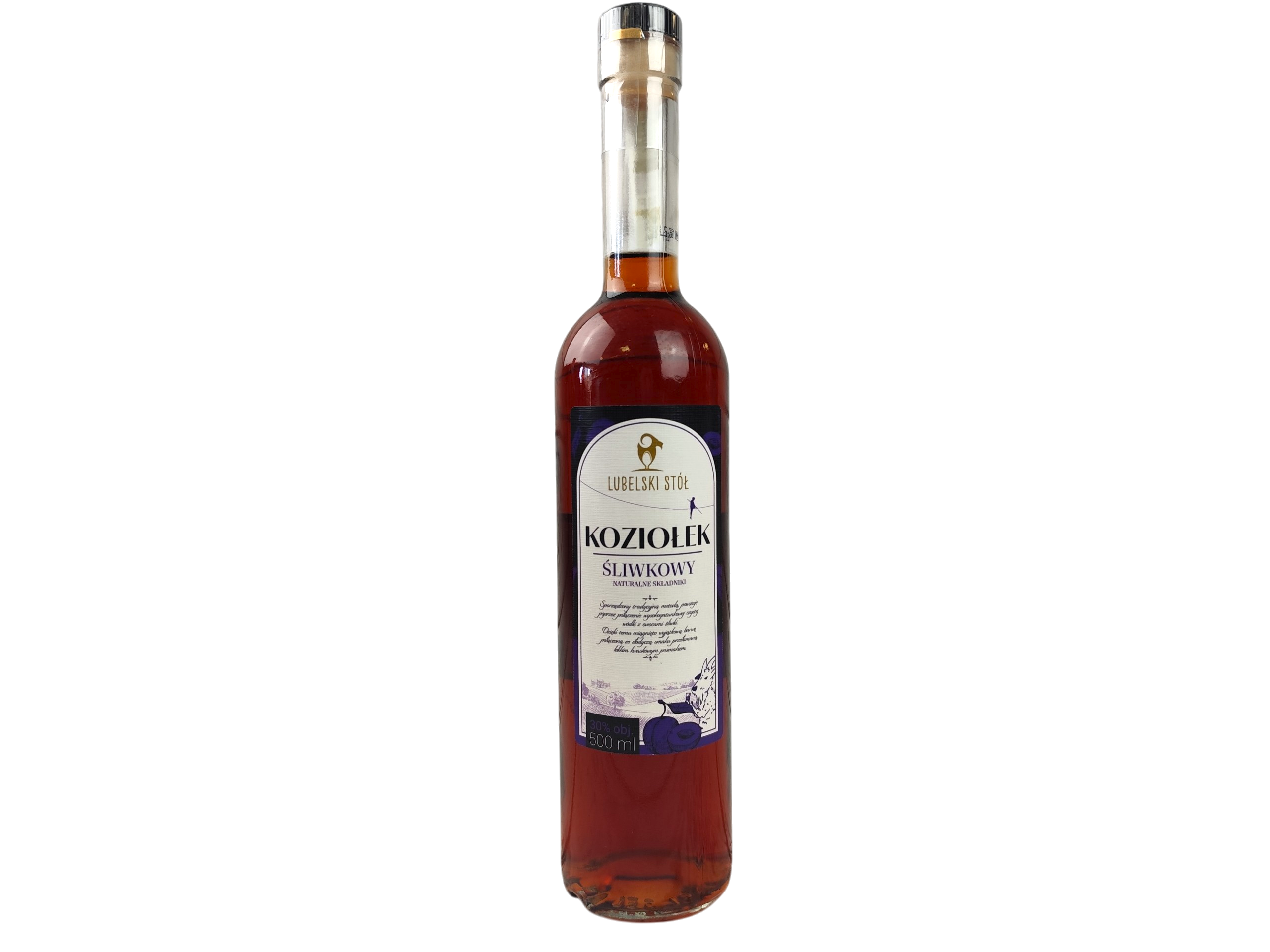 Likier Śliwkowy Koziołek 30%, sporządzony tradycyjną metodą, powstaje poprzez połączenie wysokogatunkowej czystej wódki z owocami śliwki. Dzięki temu osiągnięto wyjątkowy smak słodyczy dojrzałej śliwki przełamany lekkim kwaskowym posmakiem.