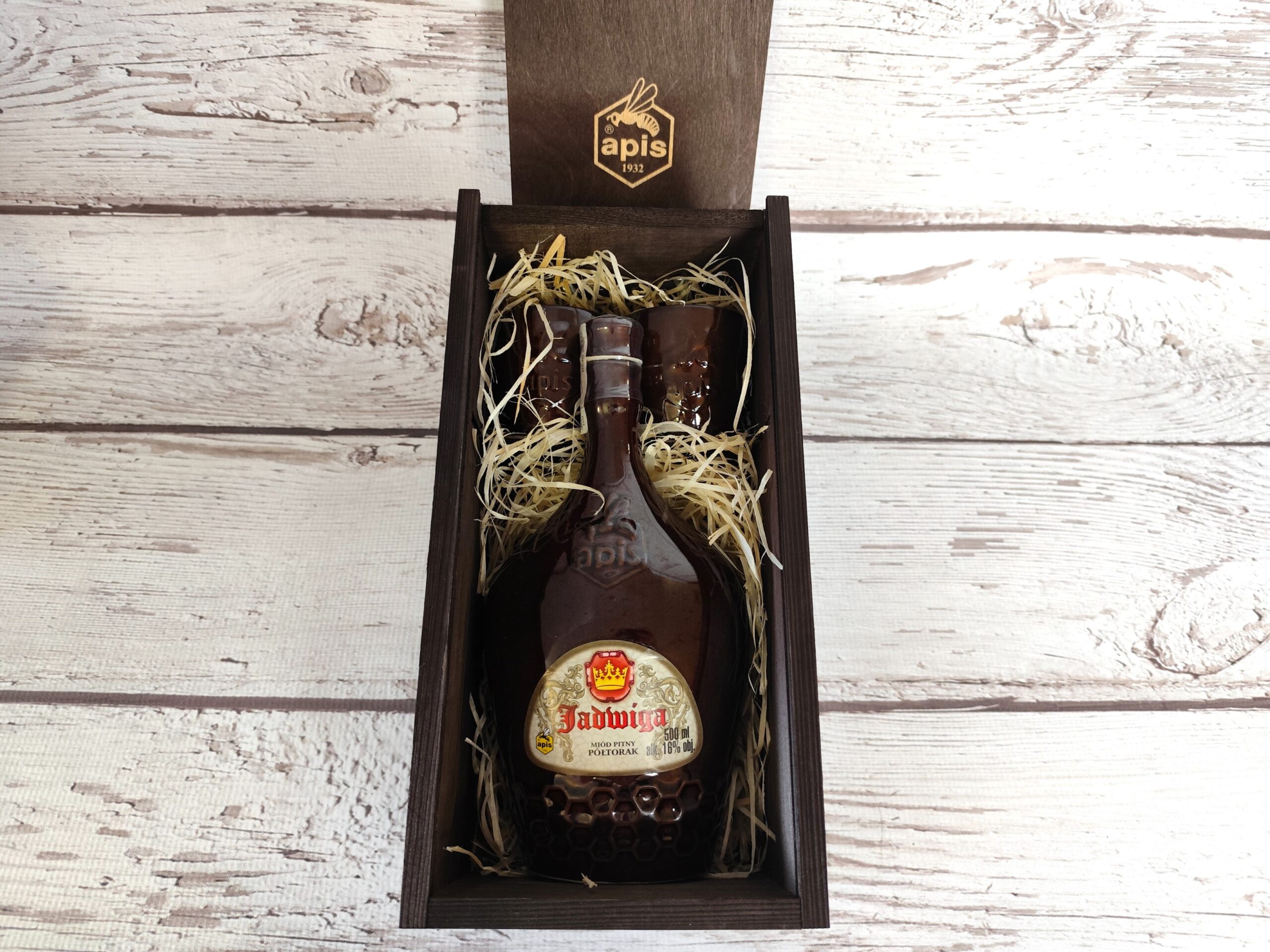 Miód pitny półtorak Jadwiga 500 ml w skrzynce ciemnej + 2 czarki