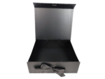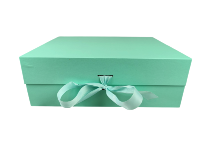 Pudełko prezentowe magnetyczne ze wstążką, o wymiarach: 31,5x26x10,5 cm, wypełnione wełną drzewną.