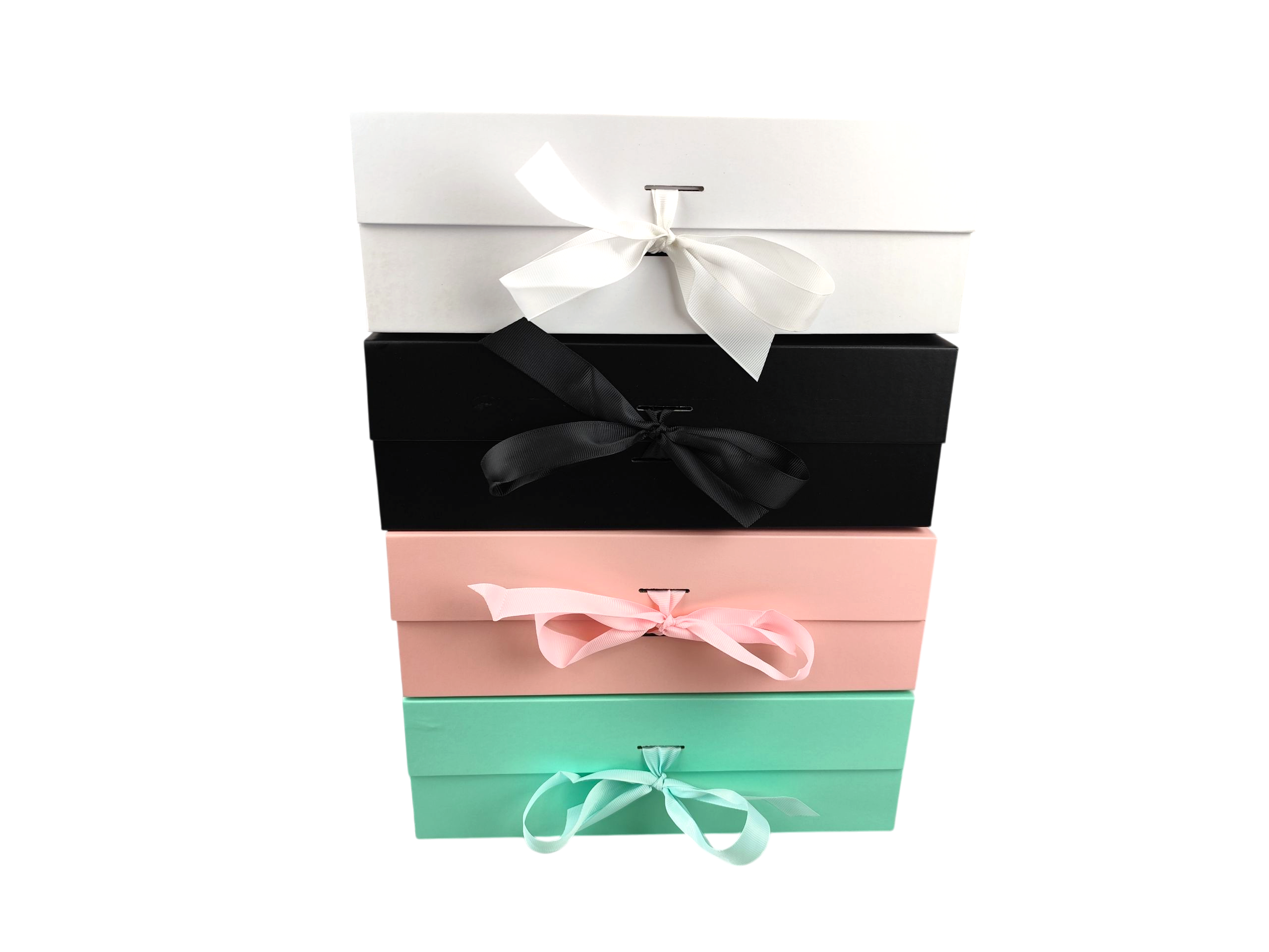Pudełko prezentowe magnetyczne ze wstążką, o wymiarach: 31,5x26x10,5 cm, wypełnione wełną drzewną.