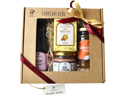 Zestaw prezentowy skomponowany jest z najwyższej jakości produktów pochodzących z Lubelszczyzny. Zestaw prezentowy wykonany jest z wielką starannością, ręcznie pakowany oraz dekorowany, a produkty wchodzące w skład zestawu są wytwarzane w limitowanych seriach i nie są powszechnie dostępne. Połączenie wyglądu i smaków sprawia, że zestaw prezentowy stanowi wspaniały i niezapomniany prezent dla obdarowywanej osoby.