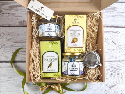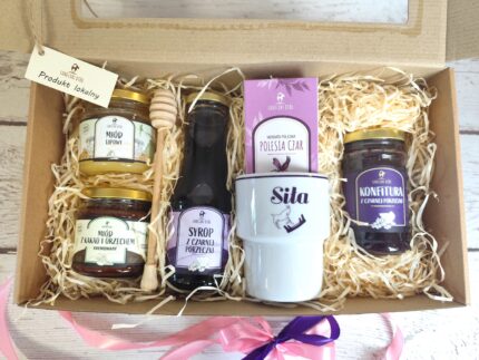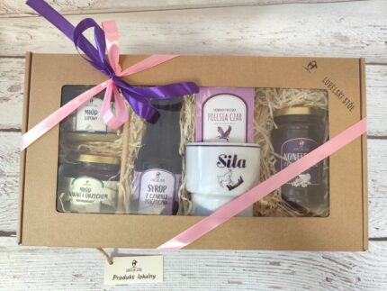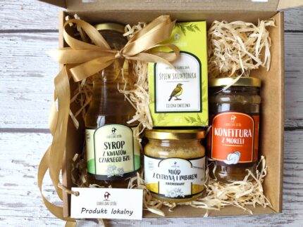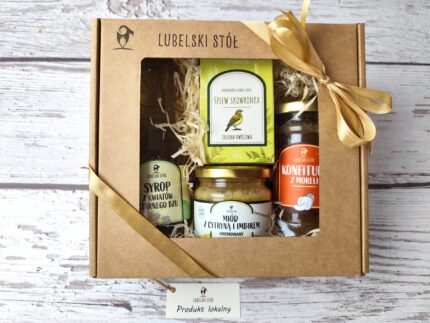 Zestaw prezentowy zawiera wysokiej jakości lokalne produkty: