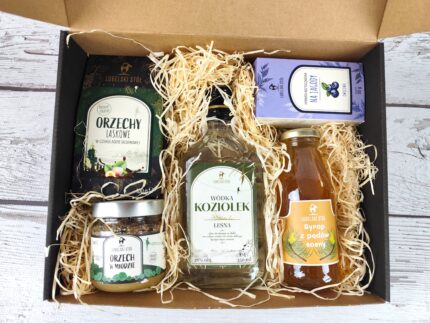 Zestaw prezentowy zawiera wysokiej jakości lokalne produkty: