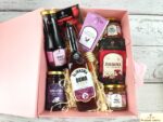 Zestaw jest estetycznie zapakowany w pudełko magnetyczne ze wstążką 31,5x26x10,5 Różowe, wypełnione wełną drzewną i przyozdobione wstążką.