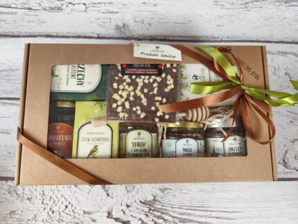 Zestaw prezentowy zawiera wysokiej jakości lokalne produkty: