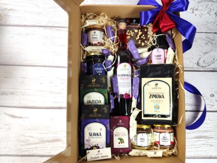Zestaw prezentowy zawiera wysokiej jakości lokalne produkty: