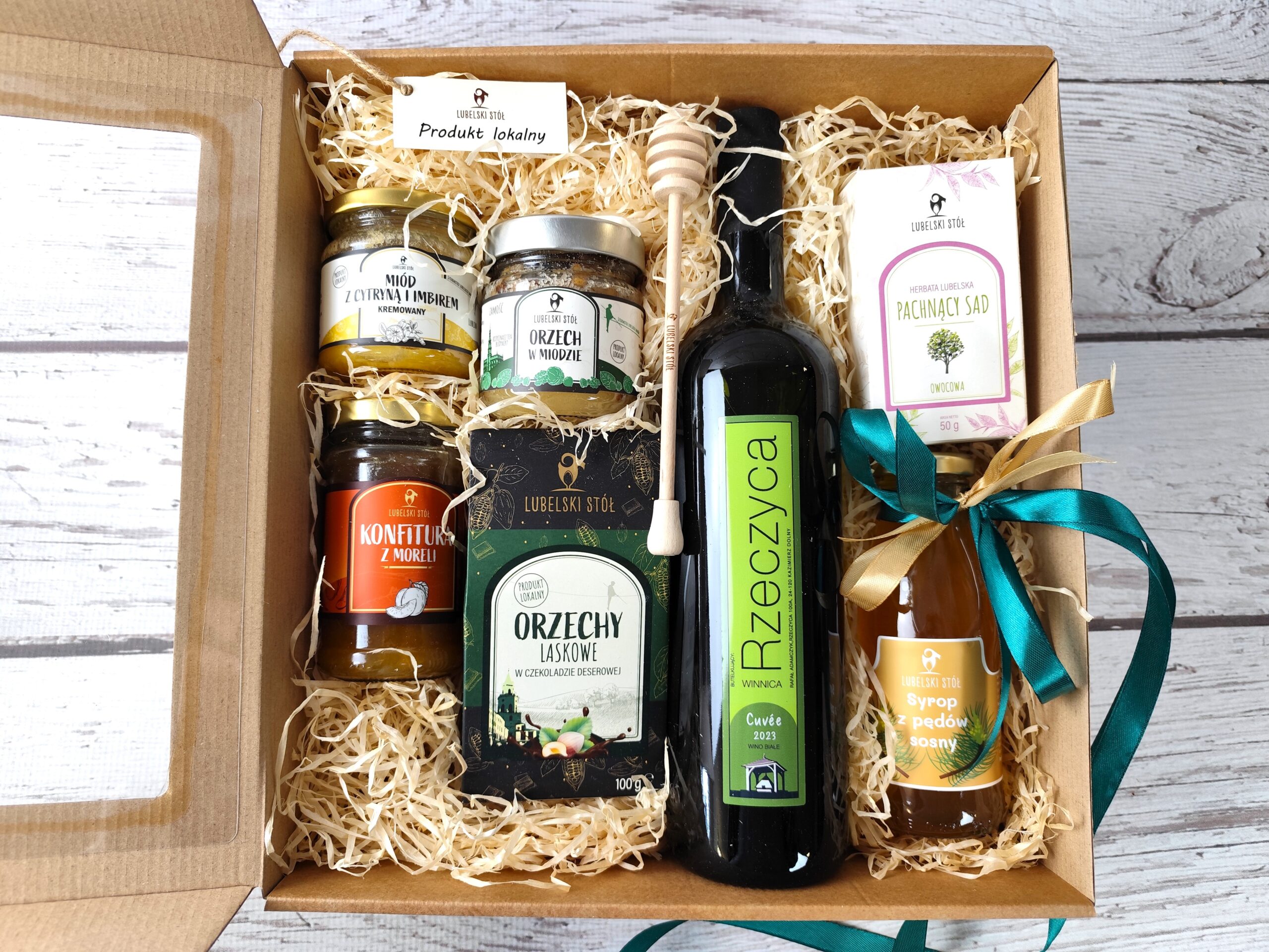 Zestaw prezentowy zawiera wysokiej jakości lokalne produkty: